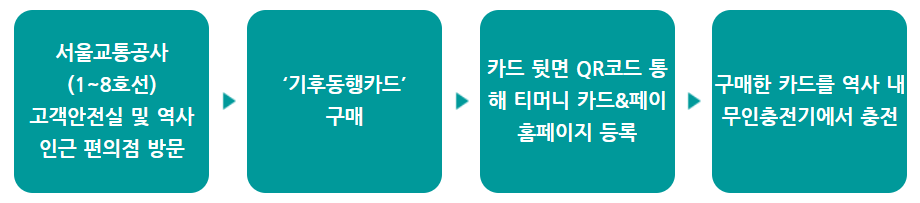 * 따릉이를 이용할 때 : <티머니 GO> 앱을 이용하여 기후동행카드 번호르 등록하면 카드 사용기간 동안 1시간의