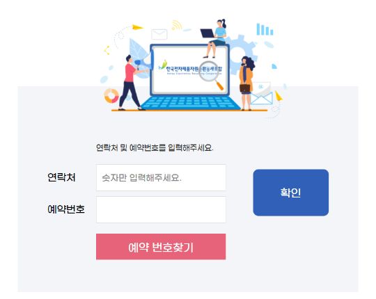 예약내용을 조회하고 싶으시거나, 취소신청을 원하실 때 인터넷으로 조회 하실 수 있습니다. 예약 신청 후 예약번호를 받게 되는데, 내 연락처와 예약번호를 입력하면 조회와 취소변경이 가능합니다.